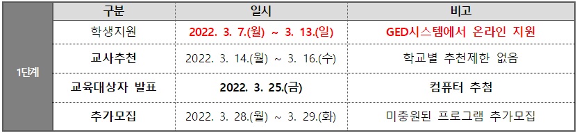 | 2 | 입시요강 | [교육청] 2022학년도 경기미래영재교육원 창의융합상상소 입학전형 | ![]() |