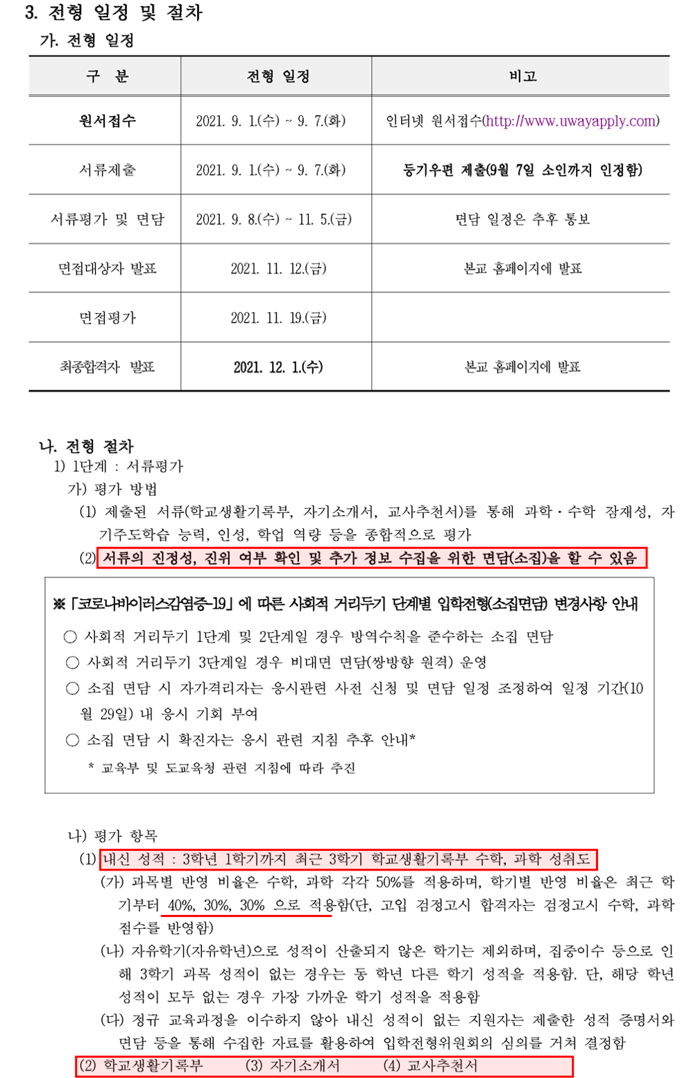 과학고 2022학년도 강원과학고 입학전형