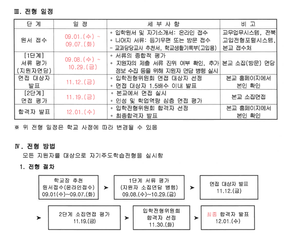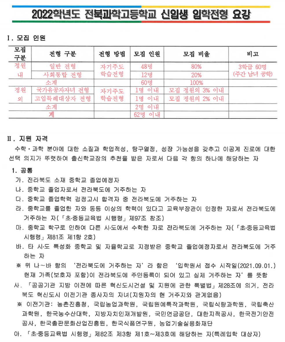 과학고 2022학년도 전북과학고 입학전형